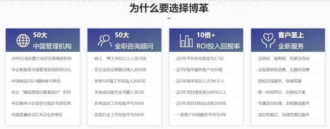 博革結(jié)合跨行業(yè)、多領(lǐng)域豐富的咨詢經(jīng)驗(yàn),并融合國(guó)內(nèi)企業(yè)的特點(diǎn),設(shè)計(jì)了博革智造的模型,幫助國(guó)內(nèi)1000+企業(yè)實(shí)現(xiàn)從精益化到自動(dòng)化、數(shù)字化、智能化的跨越轉(zhuǎn)變,有效為企業(yè)提升核心競(jìng)爭(zhēng)力,實(shí)現(xiàn)智能化生產(chǎn)運(yùn)營(yíng)系統(tǒng)的搭建及陪跑,助力企業(yè)全面實(shí)現(xiàn)卓越運(yùn)營(yíng)。博革顧問(wèn)團(tuán)隊(duì)均來(lái)自世界500強(qiáng)企業(yè),如豐田、三星、富士康等,其中多位專家是中國(guó)企業(yè)聯(lián)合會(huì)管理咨詢專家、全國(guó)六西格瑪推進(jìn)委員會(huì)專家委員;六西格瑪注冊(cè)黑帶考試命題專家委員、韓國(guó)能率協(xié)會(huì)、日本能率協(xié)會(huì)專家。并且博革在全國(guó)擁有上百家戰(zhàn)略合作伙伴,其中包含了:自動(dòng)化、數(shù)字化、智能化等各個(gè)領(lǐng)域的戰(zhàn)略合作伙伴。