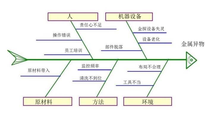 a、確定大要因(大骨)時(shí),現(xiàn)場(chǎng)作業(yè)一般從“人機(jī)料法環(huán)”著手,管理類(lèi)問(wèn)題一般從“人事時(shí)地物”層別,應(yīng)視具體情況決定;