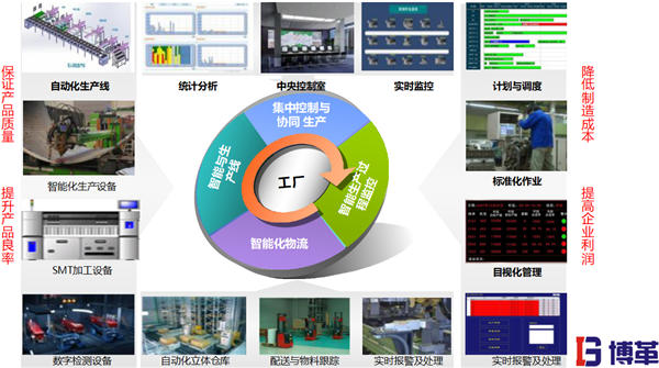 智能工廠規劃在數字化工廠的基礎上,利用物聯網技術和監控技術加強信息管理服務,提高生產過程可控性、減少生產線人工干預,以及合理計劃排程。同時,集初步智能手段和智能系統等新興技術于一體,構建高效、節能、綠色、環保、舒適的人性化工廠。