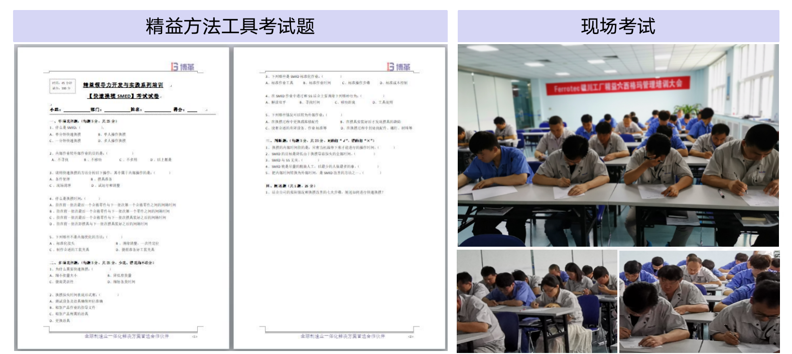 每期課程結束后,需進行精益方法工具的考核,考核成績記錄學員的總分,直接影響精益專家的認證結果。