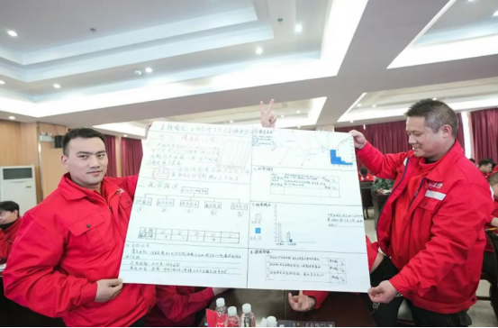 作為系列培訓的收官之戰,本次培訓特別設置“四期成果復盤”環節。熊霆老師與學員共同回顧:從“現場5S管理”到“設備自主維護”,從“質量問題追溯”到“精益浪費改善”,金牌班組4班已形成“問題能識別、工具會使用、改善能落地”的完整能力體系。學員們帶著“浪費識別清單”“簡易A3模板”“班組精益計劃”等5類實操工具返程,更帶回了“持續改善”的思維習慣。太陽能班組長沙磊說:“四期培訓下來,我們從‘只會干活’變成‘會找問題、會解難題’,現在班組里人人都能提改善建議。”