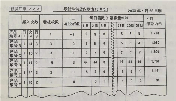 供應鏈信息系統:豐田公司與供貨廠家 零部件供貨內示表